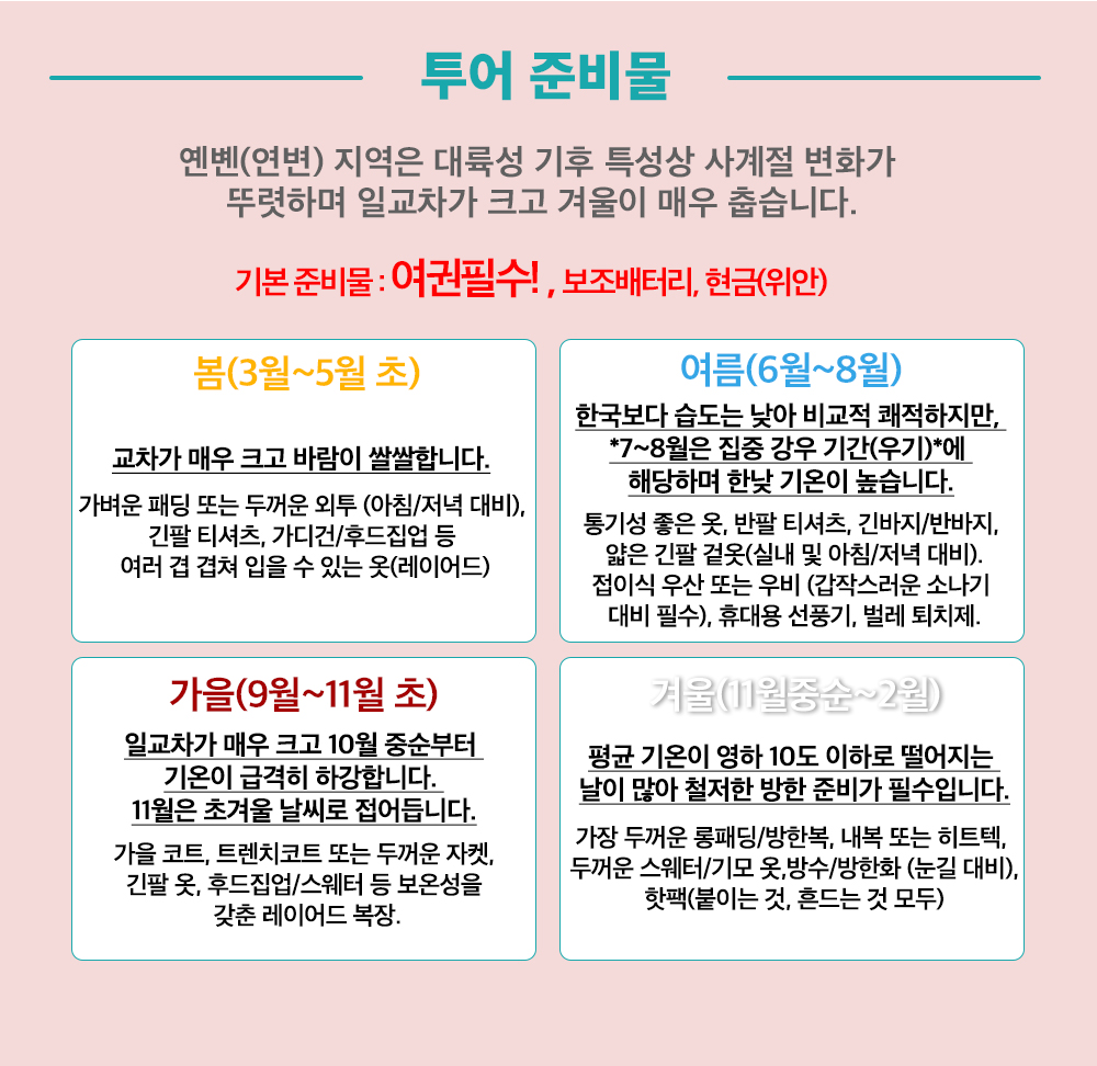 여행 일정은 계약 체결 시 예상하지 못한 부득이한 사정 등이 발생하는 경우 여행자의 사전 동의를 거쳐 변경될 수 있음을 양지하여 주시기 바랍니다.