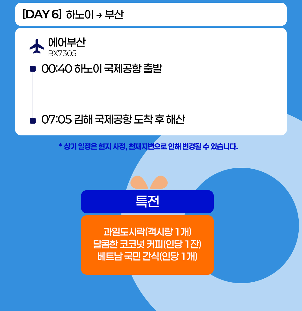 여행 일정은 계약 체결 시 예상하지 못한 부득이한 사정 등이 발생하는 경우 여행자의 사전 동의를 거쳐 변경될 수 있음을 양지하여 주시기 바랍니다.