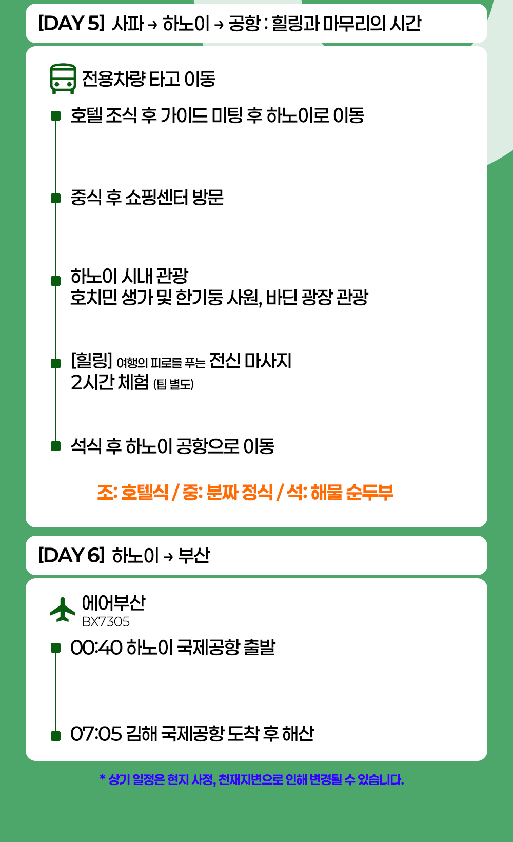 여행 일정은 계약 체결 시 예상하지 못한 부득이한 사정 등이 발생하는 경우 여행자의 사전 동의를 거쳐 변경될 수 있음을 양지하여 주시기 바랍니다.