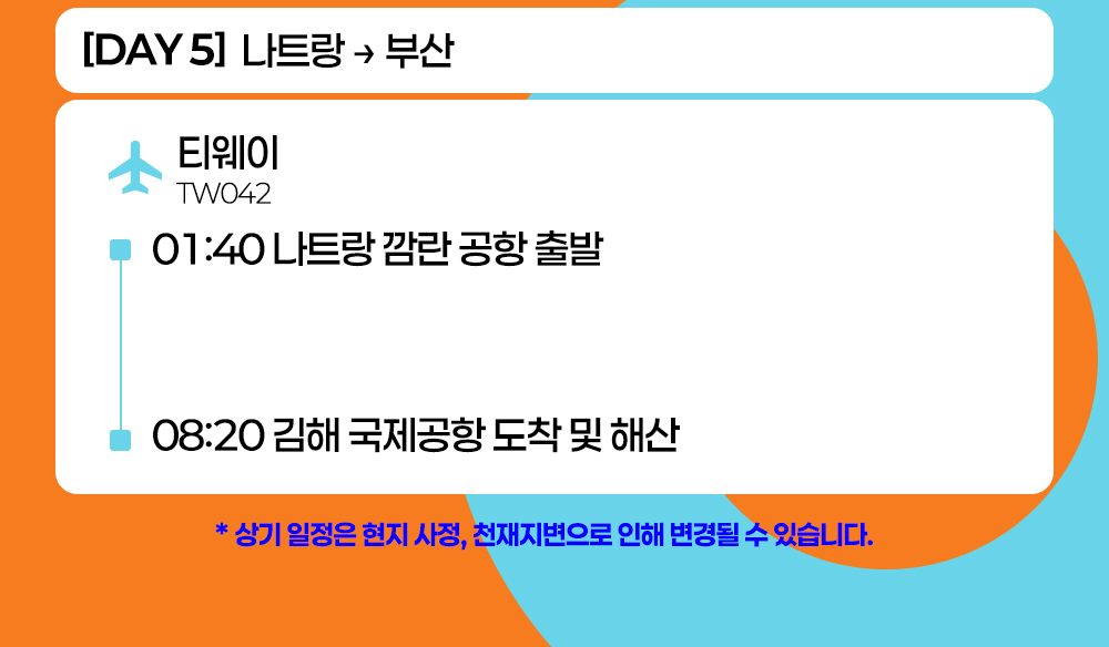 여행 일정은 계약 체결 시 예상하지 못한 부득이한 사정 등이 발생하는 경우 여행자의 사전 동의를 거쳐 변경될 수 있음을 양지하여 주시기 바랍니다.