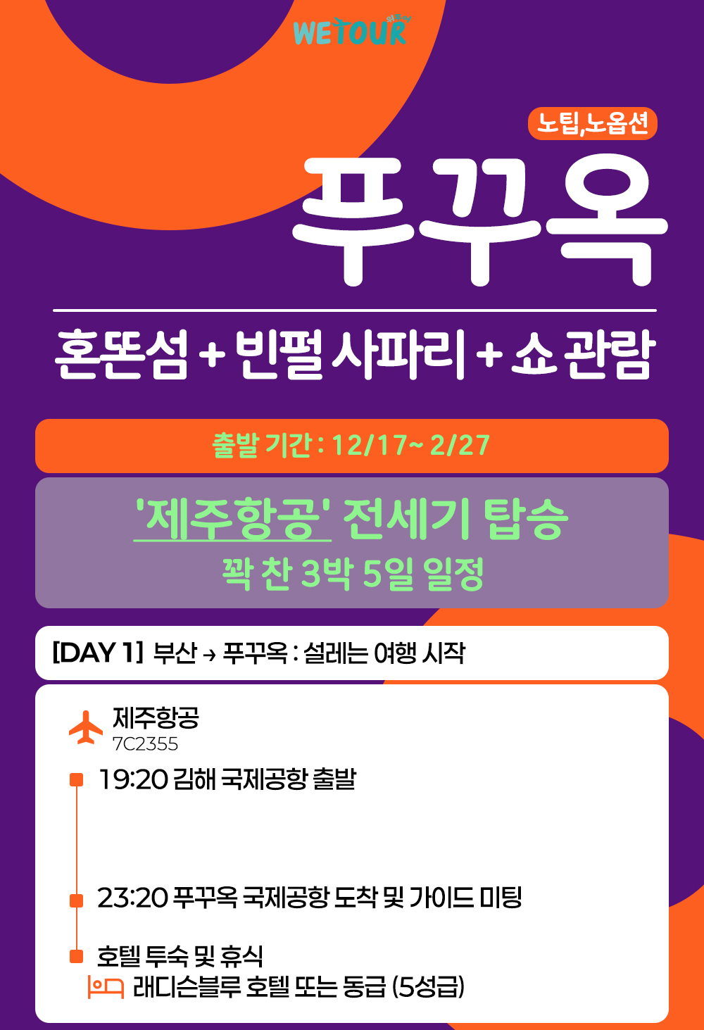 [부산 출발] 노팁/노옵션 - 베트남 푸꾸옥 3박5일 (제주항공) > 동남아
