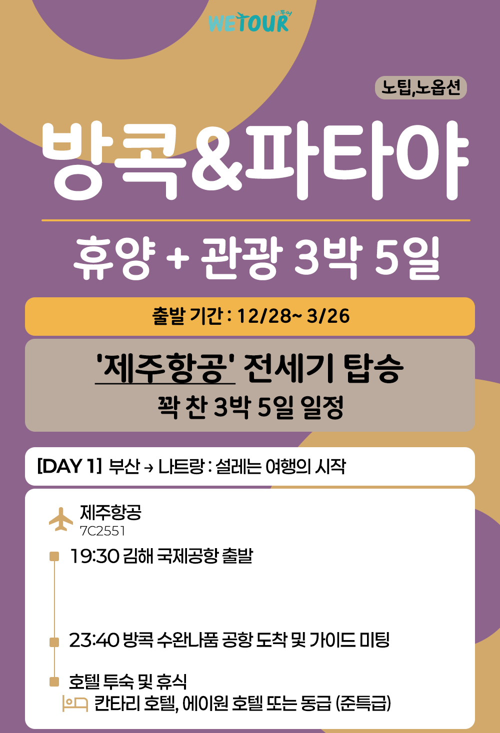[부산 출발] 노팁/노옵션 - 방콕,파타야 3박5일 (제주항공) > 동남아